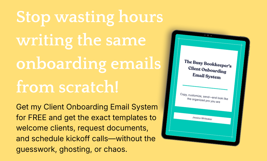 Subscribe to get weekly tips, templates, and strategies that actually simplify your bookkeeping business. The kind of stuff that saves you hours and makes clients think you have your act completely together.